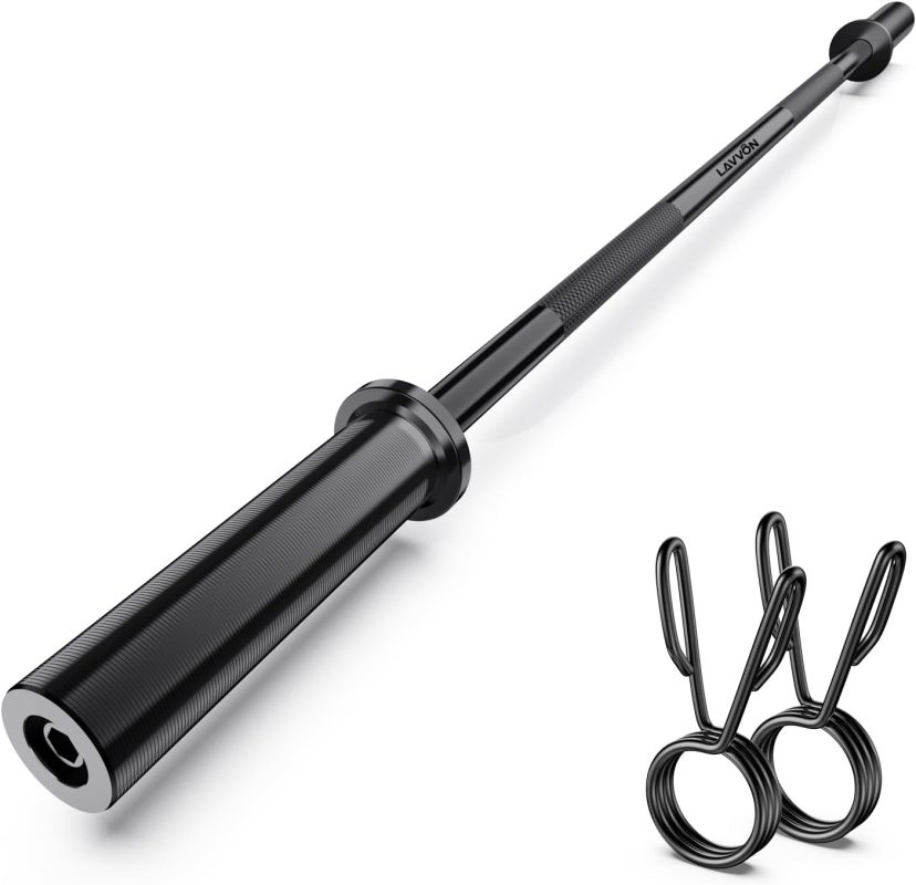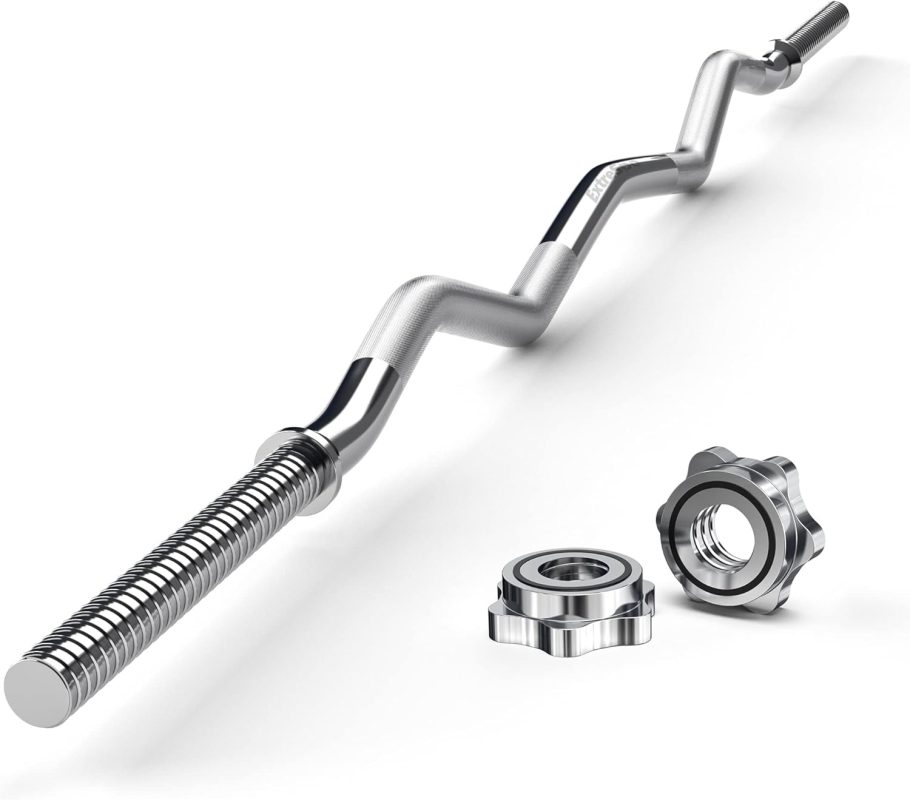 47″ EZ Curl Bar Weight Lifting Bar, for Hip Thrusts/Squats/Lunges, 1-inch Weight Plates Curling Bar for Gym and Home, with 2 Star Collars