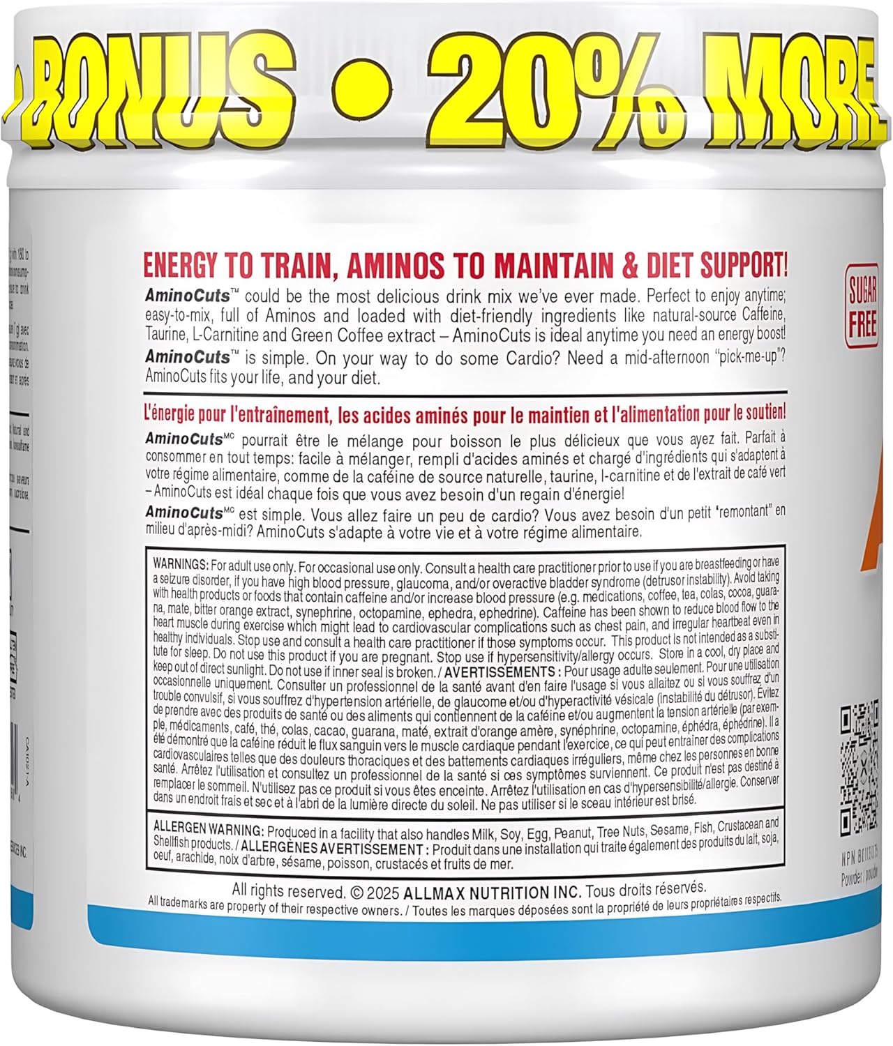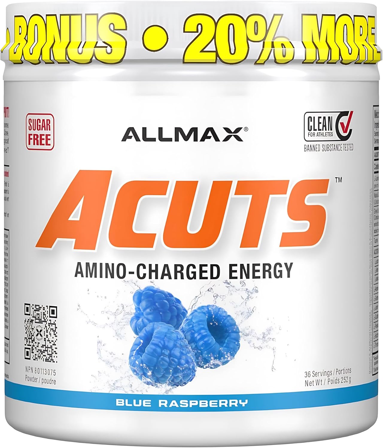 ALLMAX Nutrition AMINOCUTS (ACUTS), Amino-Charged Energy Drink with Taurine, L-Carnitine, Green Coffee Bean Extract, Blue Raspberry – Dye Free