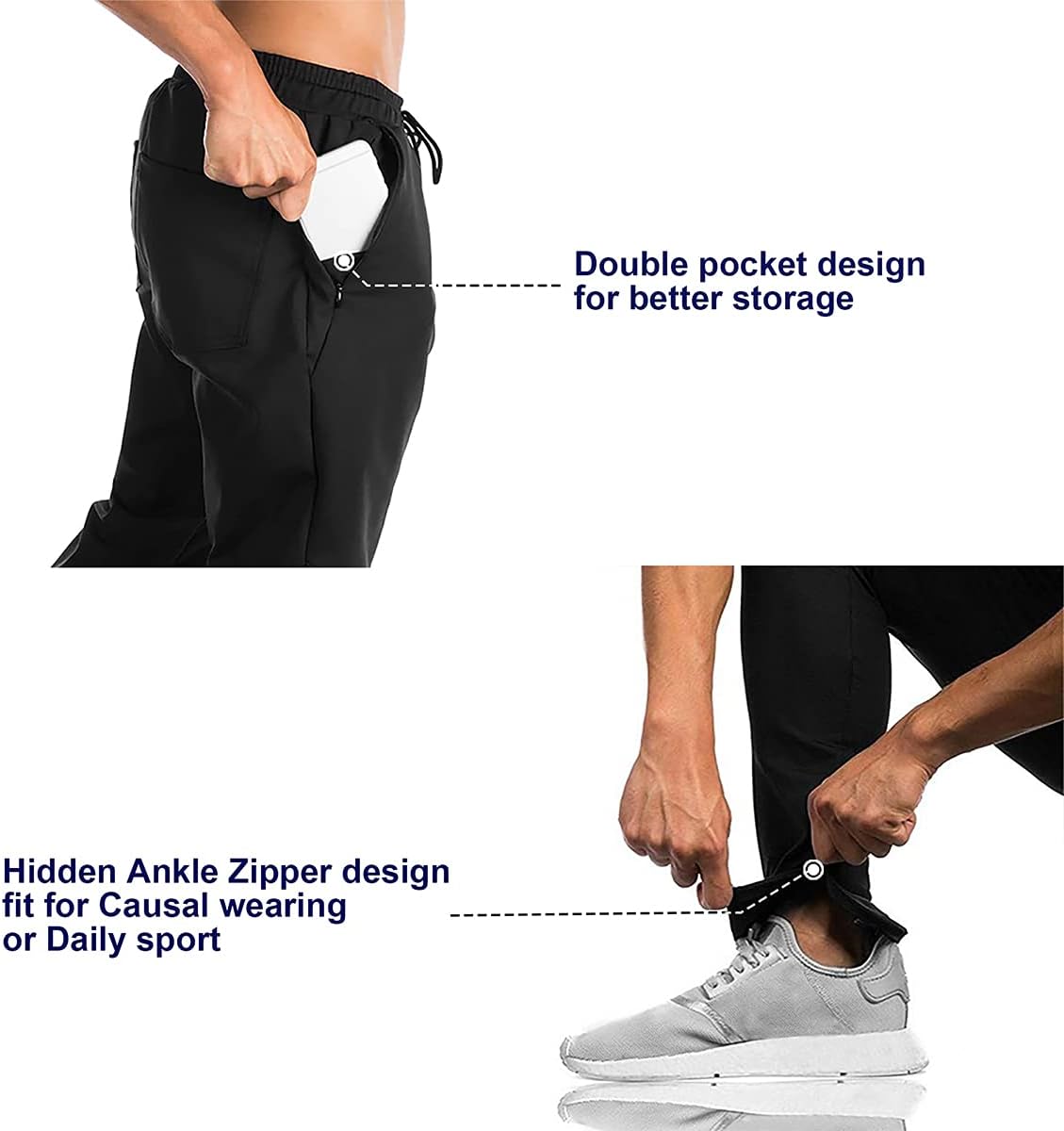BROKIG Mens Jogger Sport Pants, Casual Gym Workout Sweatpants with Double Pockets