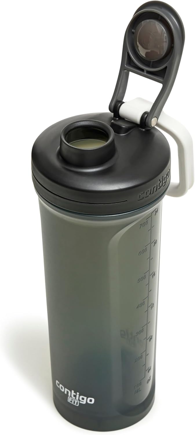 Contigo Fit Shake & Go 2.0 Protein Shaker Bottle with Leak-Proof Lid, Gym Water Bottle with Whisk and Carry Handle, Dishwasher Safe Mixer Bottle, Sake/Salt, 28 oz (828 mL)