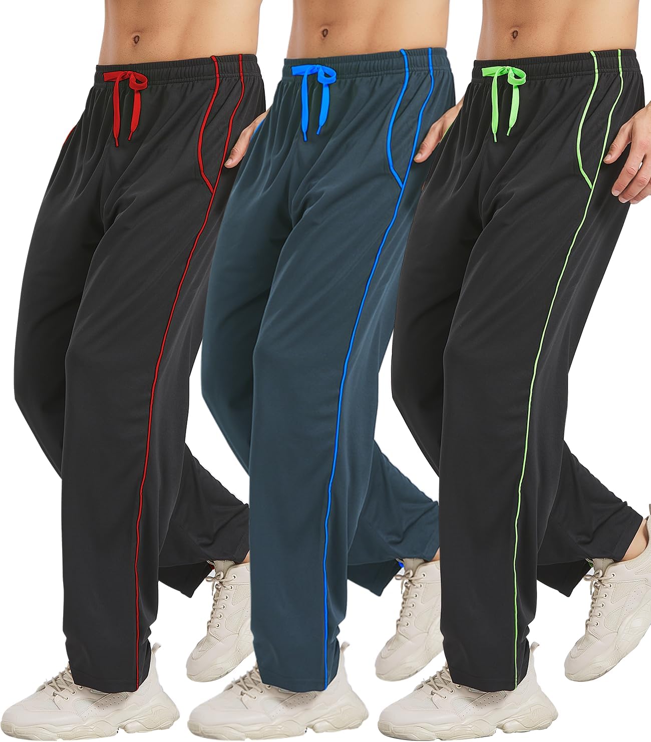 DWUGD’L 3Pack Men’s Lightweight Sweatpants with Pockets Open Bottom Athletic Pants for Workout,Jogging,Gym,Running,Training
