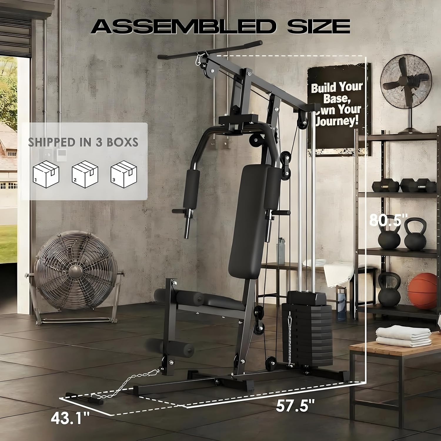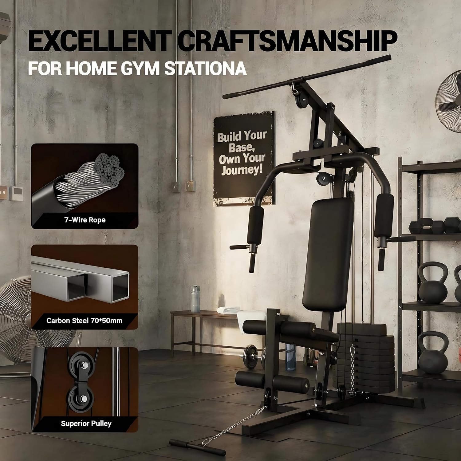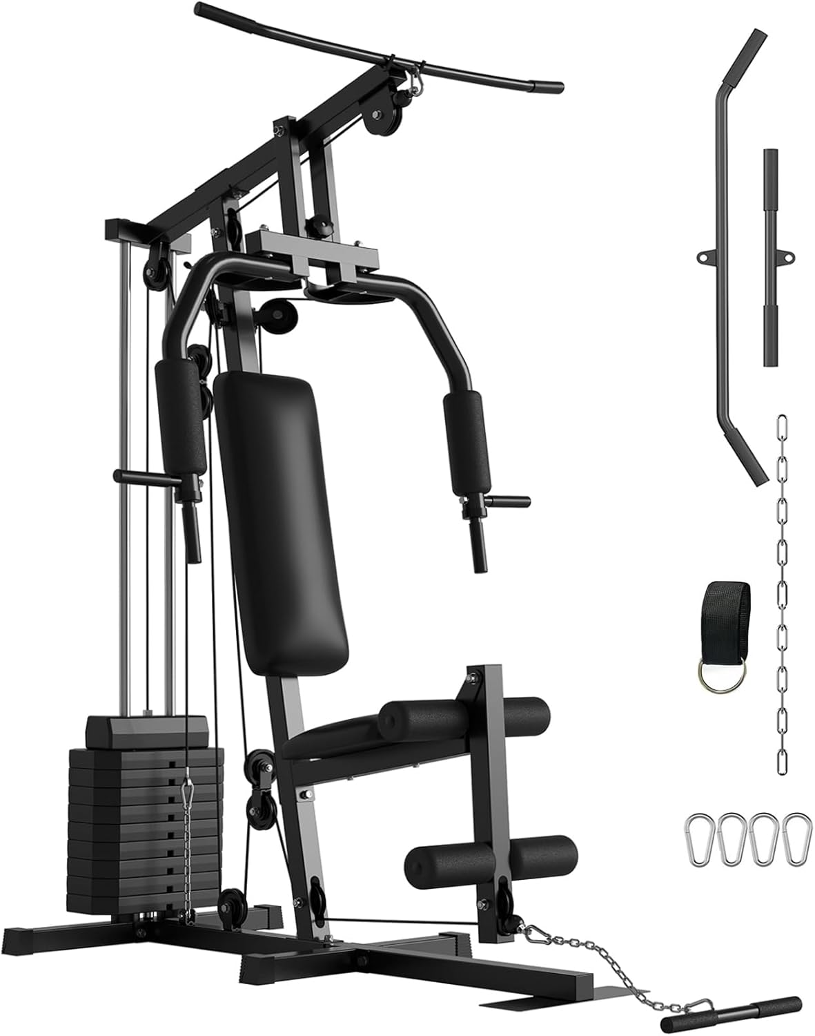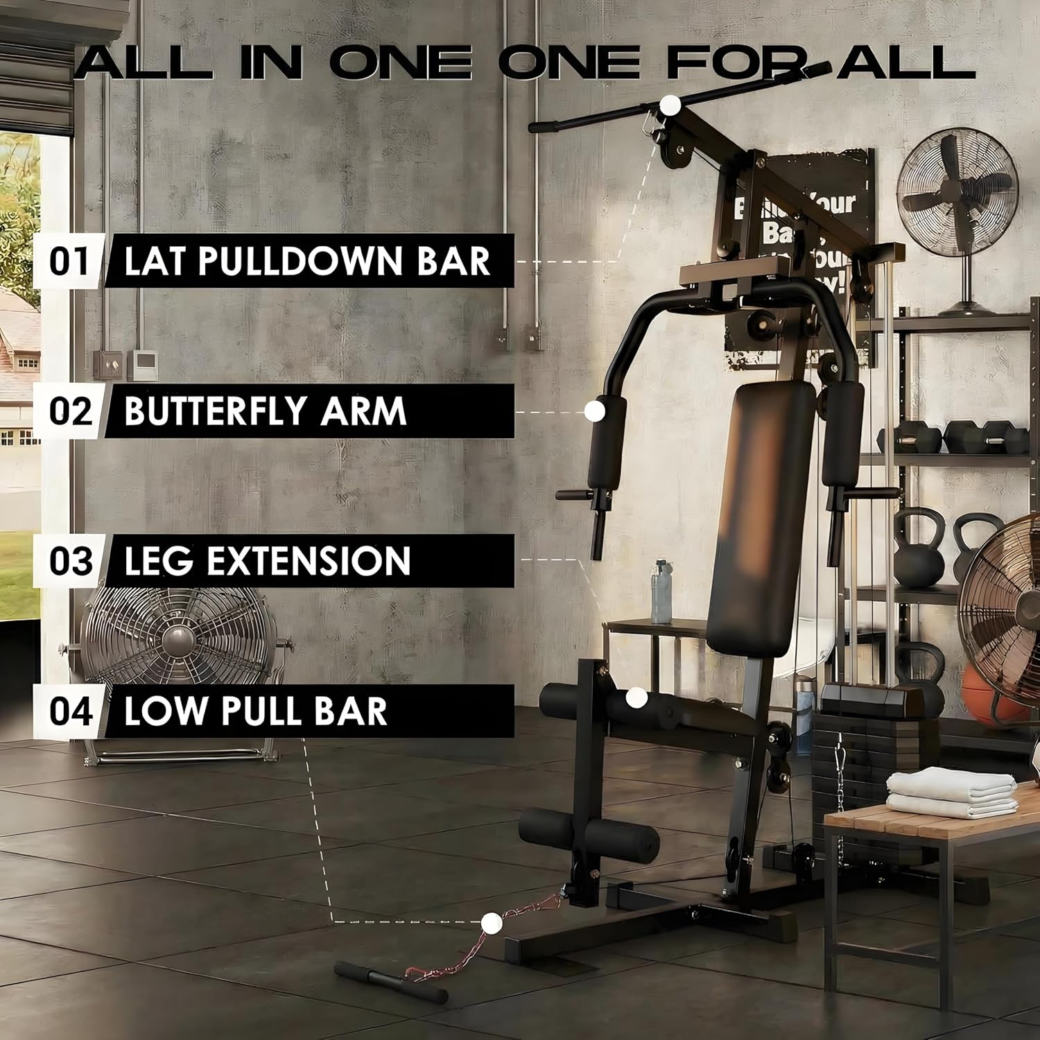 【Multifunctional All in One Home Gym】This all in one home gym lets you perform a range of full body workouts, such as chest presses, butterfly arms, lat pulldowns, low rows, leg and back extensions, and mid-rows. Optional preacher curl pad and handles (not included) customize the workout station for total body fitness.