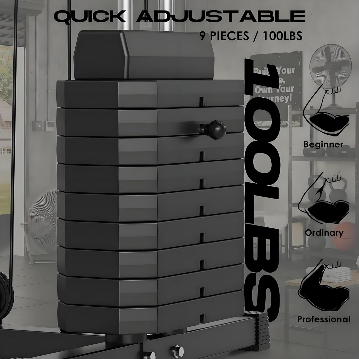 Home Gym Workout Equipment, Multifunctional Exercise Equipment with 100LBS Stack, Full Body Workout Machine, All in One Gym Equipment for Strength Training, Compact Cable Machine with Pulley System