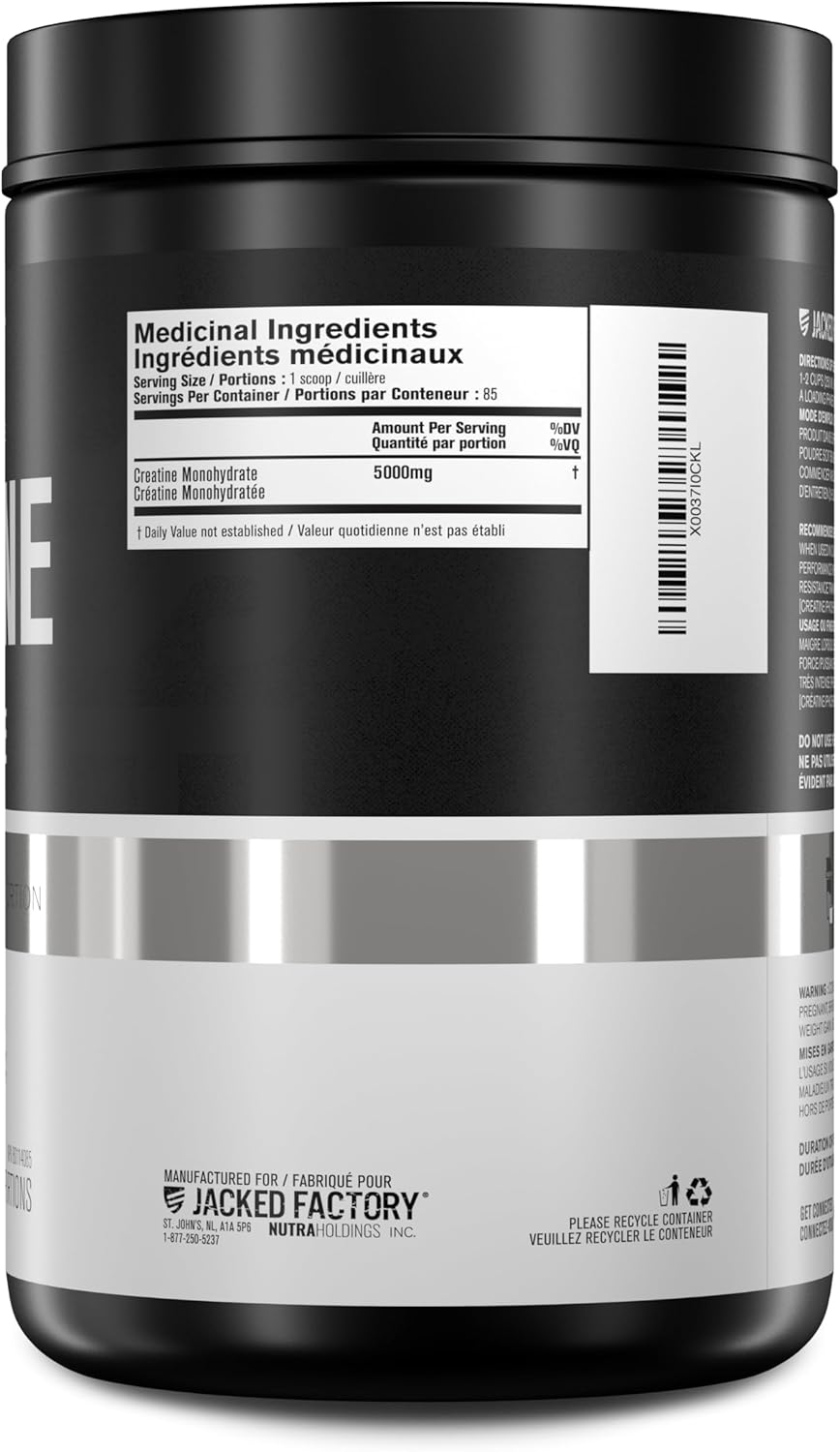 Jacked Factory Creatine Monohydrate Powder 425g – Canadian-Owned Informed Choice Certified Supplement for Increased Muscle Mass*, Improved Strength, Power, & Performance