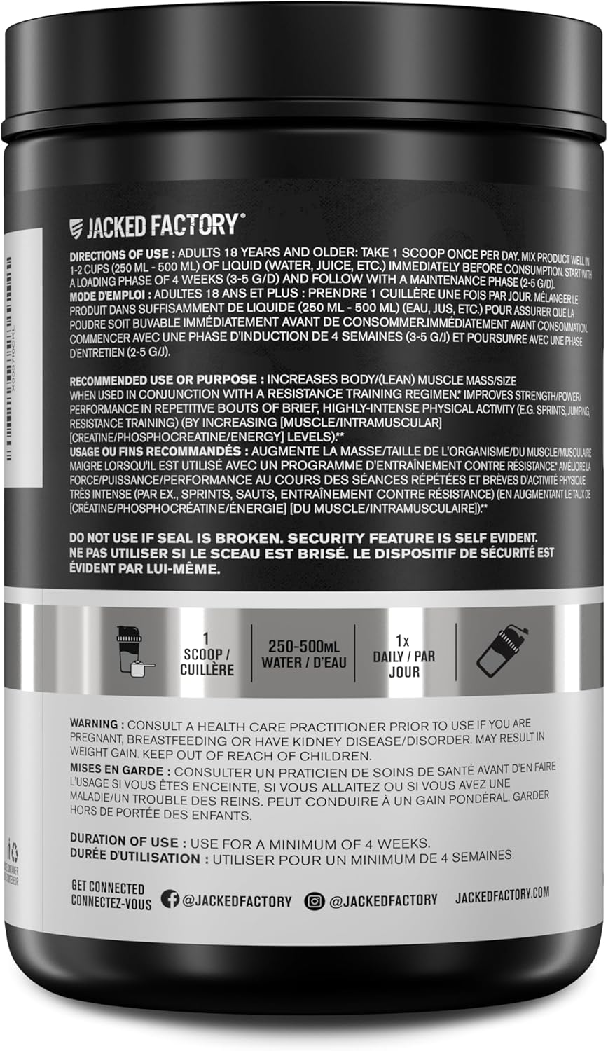 Be the first to review “Jacked Factory Creatine Monohydrate Powder 425g – Canadian-Owned Informed Choice Certified Supplement for Increased Muscle Mass*, Improved Strength, Power, & Performance”