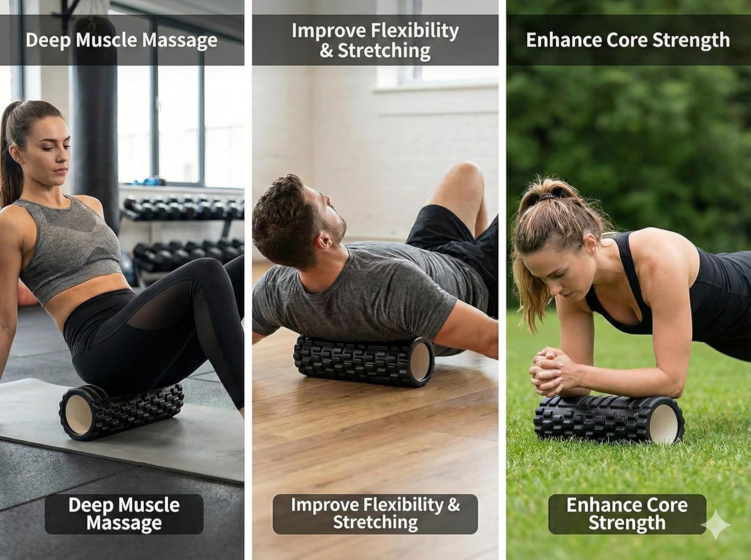 Muscle stretches and massages can be performed before and after fitness, exercise, and reduce stiffness. Relieve muscle soreness and tension, Penetrates deep into body muscles to quickly release myofascia, Improve muscle flexibility.