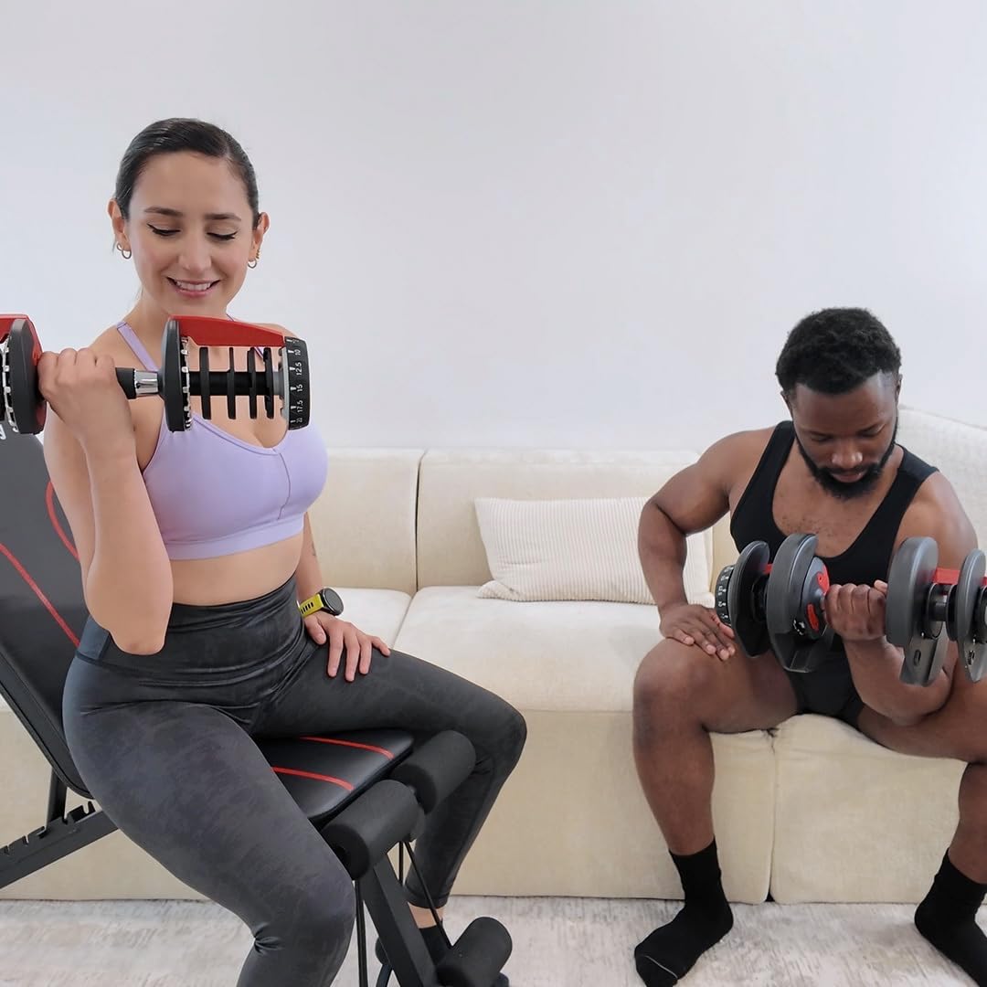 15 Weights in 1 – From 5lb to 52.5lb: Replace an entire dumbbell rack with this dumbbell set. Adjustable from 5 to 52.5 lbs—ideal for progressive overload, beginners, and advanced lifters alike.