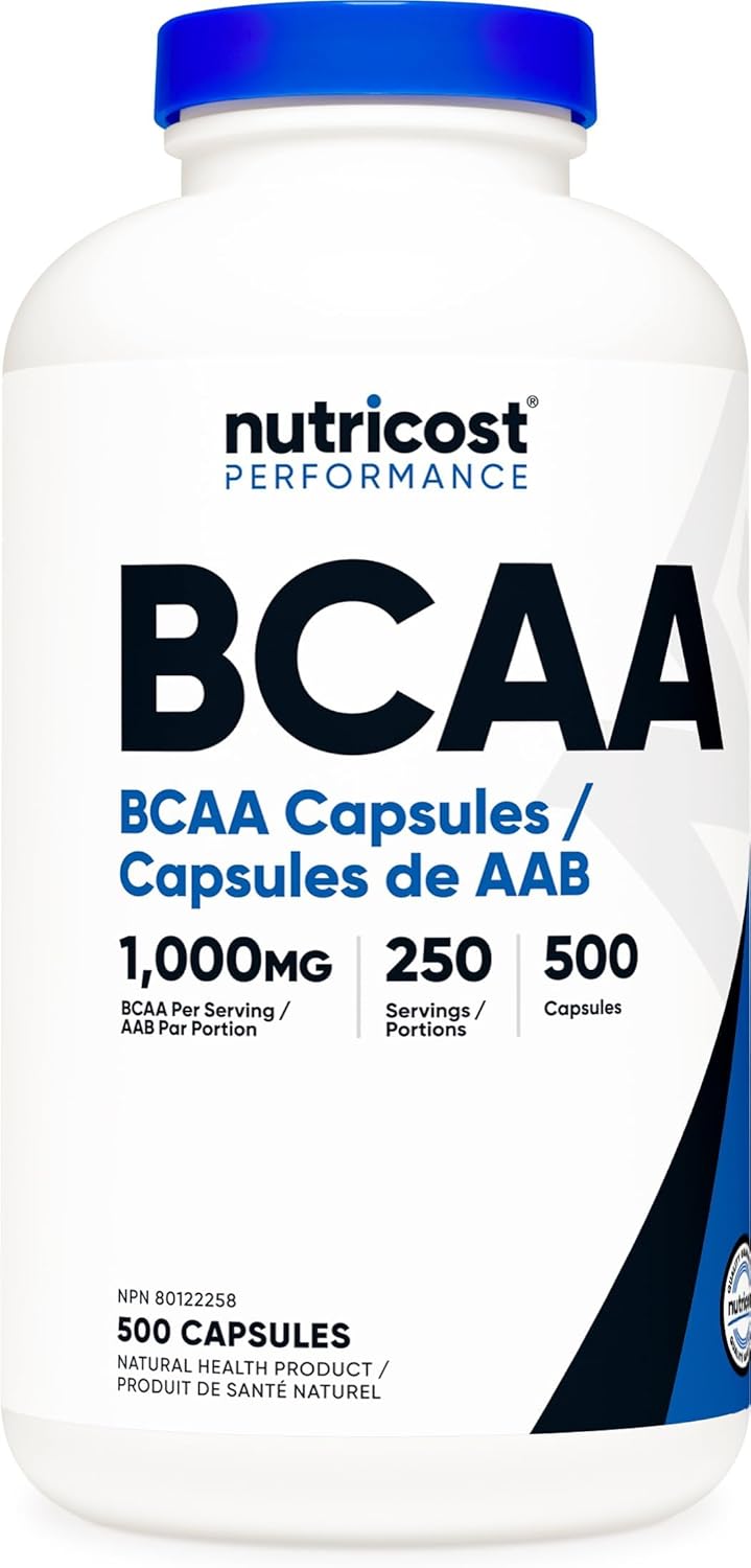 Nutricost BCAA Supplement (1000mg) 500 Capsules – 2:1:1 Branched Chain Amino Acids – Gluten-Free, Non-GMO