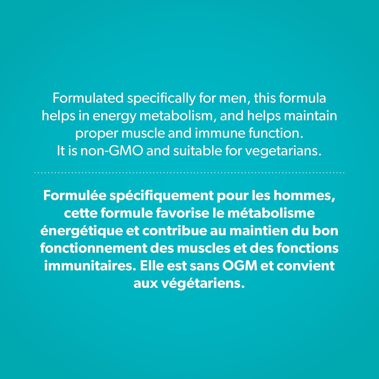 FORMULATED FOR MEN: Formulated specifically for men, this formula helps in energy metabolism, and helps maintain proper muscle and immune function. It is non-GMO and suitable for vegetarians.