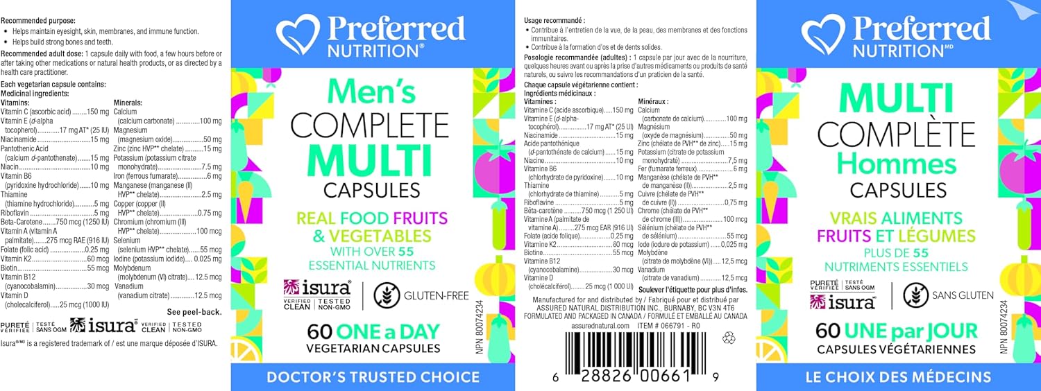Preferred Nutrition Men’s Complete Multi, One-A-Day, 60 Veg Caps, Over 55 Essential Nutritients, Helps in Energy Metabolism, Maintain Proper Muscle and Immune Function, Non-GMO, Proudly Canadian