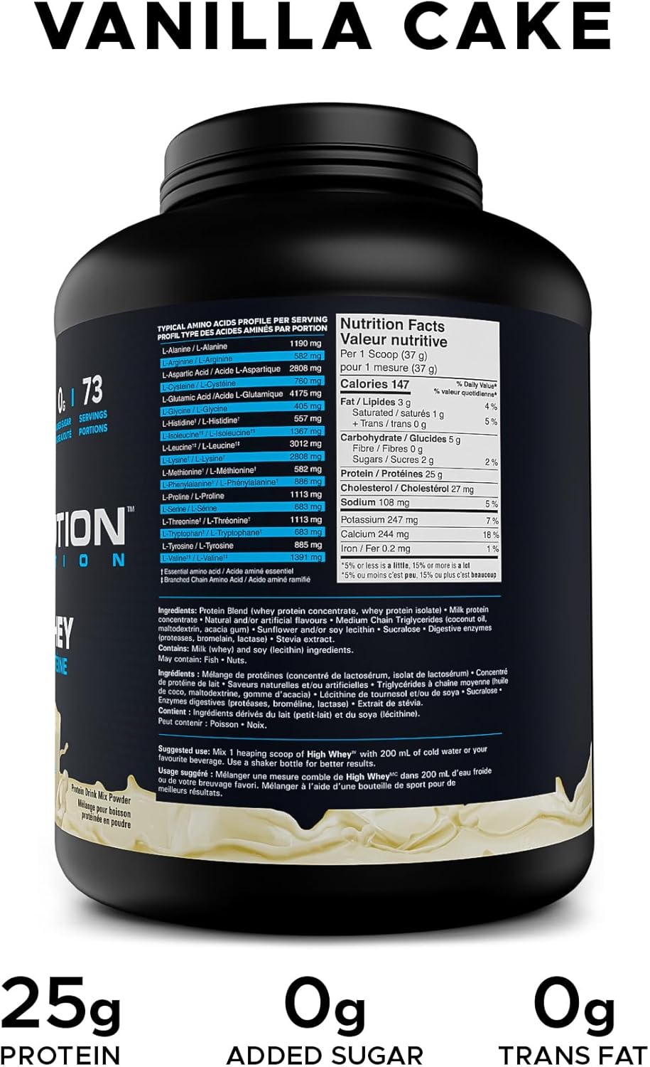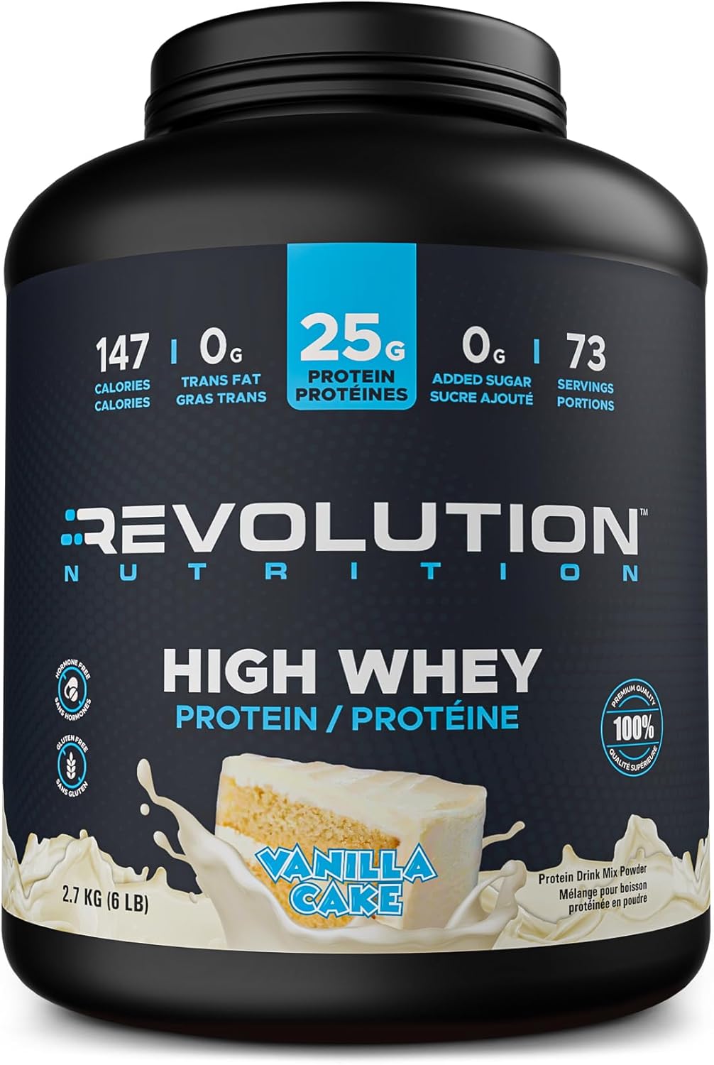 Revolution Nutrition, High Whey, Protein Powder 6LB, Whey Protein, Gluten Free, 25g of Protein Per Scoop, 2.7kg, 73 Servings (Vanilla Cake, 6 Pound)