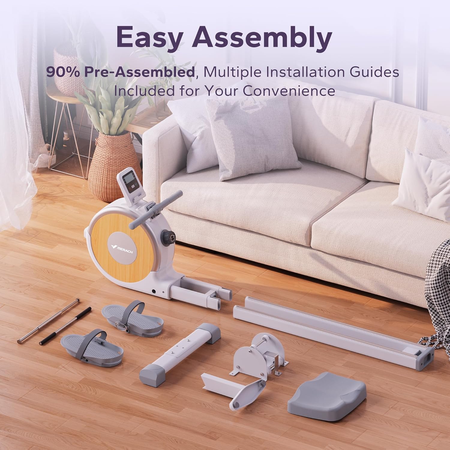 Easy Assemble: MERACH rowing machine can be easily assembled within 30 mins by most users. It is partially pre-assembled and can be moved around easily at home.