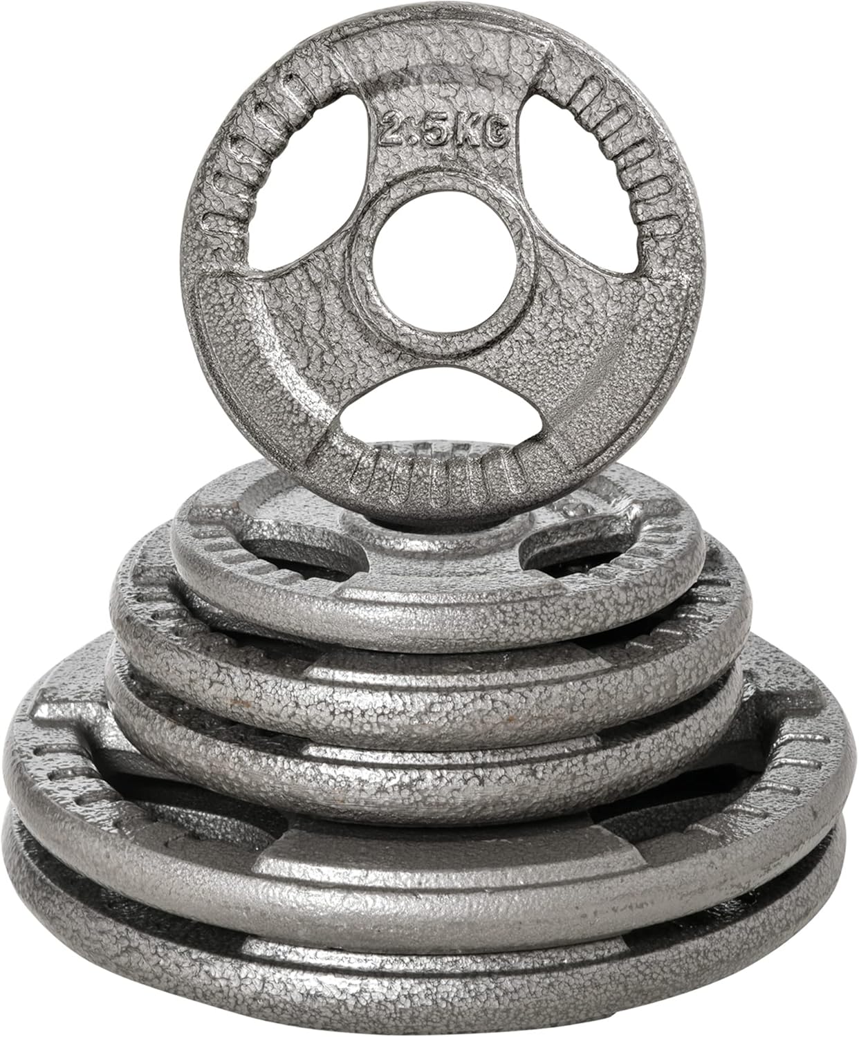 Want to building a great home gym? Try out this weight plates from Soozier. Whether you are using barbell, or trap bar, these weights can be interchanged to fit your standard olympic bar. The weight plates made of solid steel with enamel finish to prevent the plates from rust and corrosion for long time use, increase the intensity of your workout. Weight plates can be flexible combination used to perform muscle strengthening exercises and endurance training. Star home gym with the weight plates.