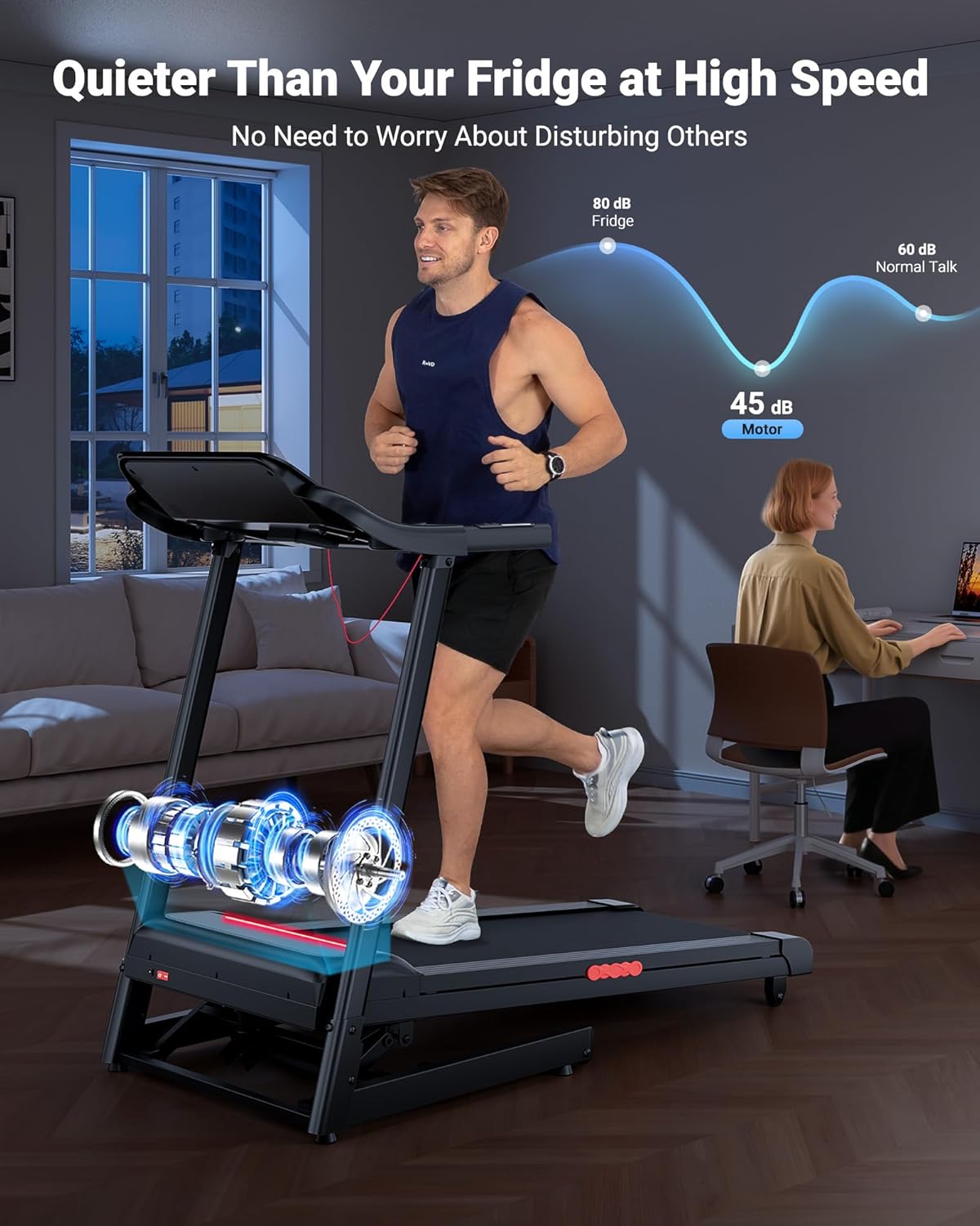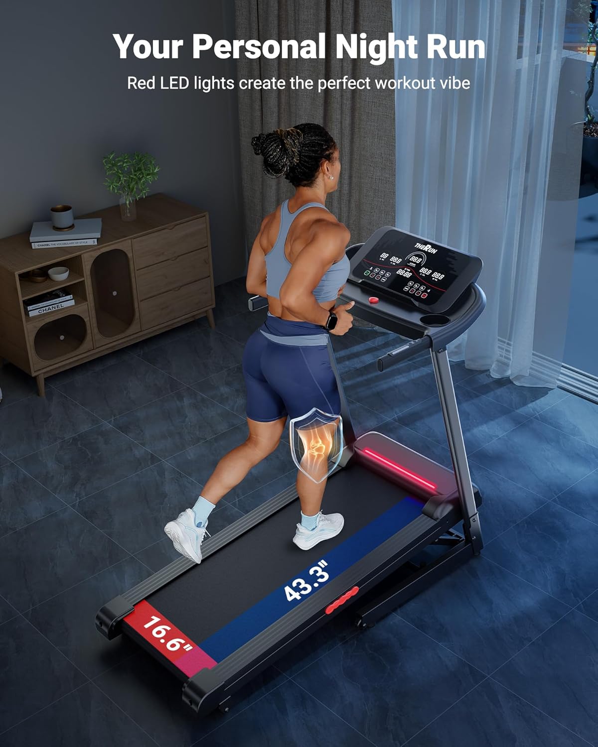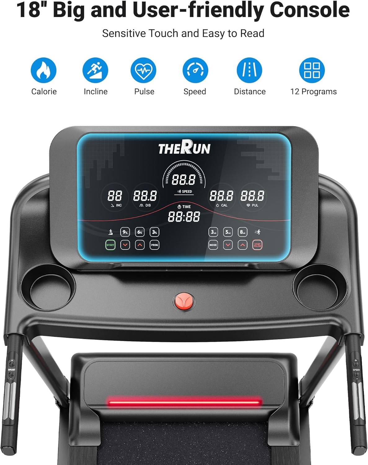 THERUN Home Treadmill with Incline 12% Auto Adjust, 3.0 HP Foldable Treadmill with LED Strip, Heart Rate Monitoring,16.5″ Wider Running Belt