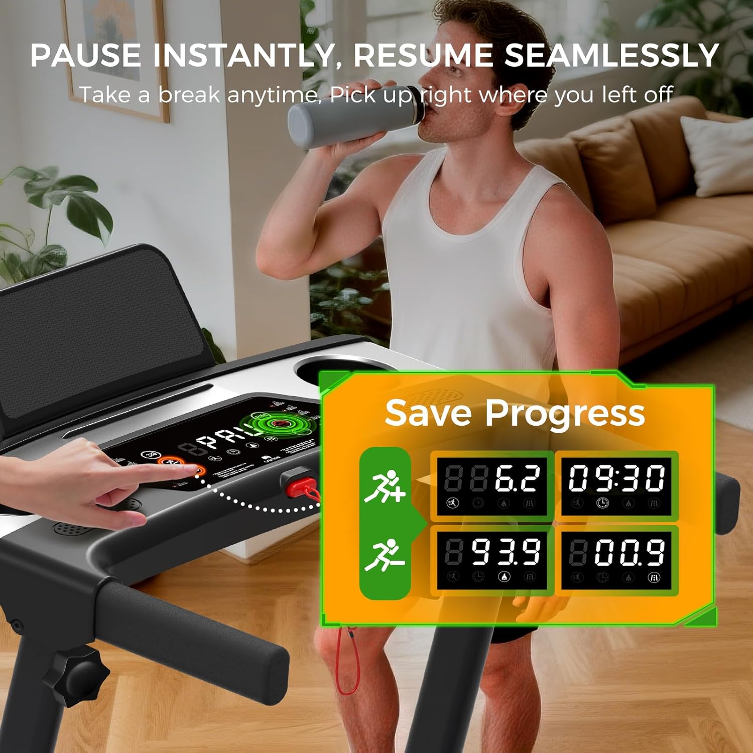 📊 【Smart LED Display & 12 Programs】Treadmill with handles features a clear LED console that tracks time, speed, distance, and calories. With 12 preset programs and a convenient pause function, this walking pad treadmill with incline helps you effortlessly tailor your workouts and resume right where you left off.