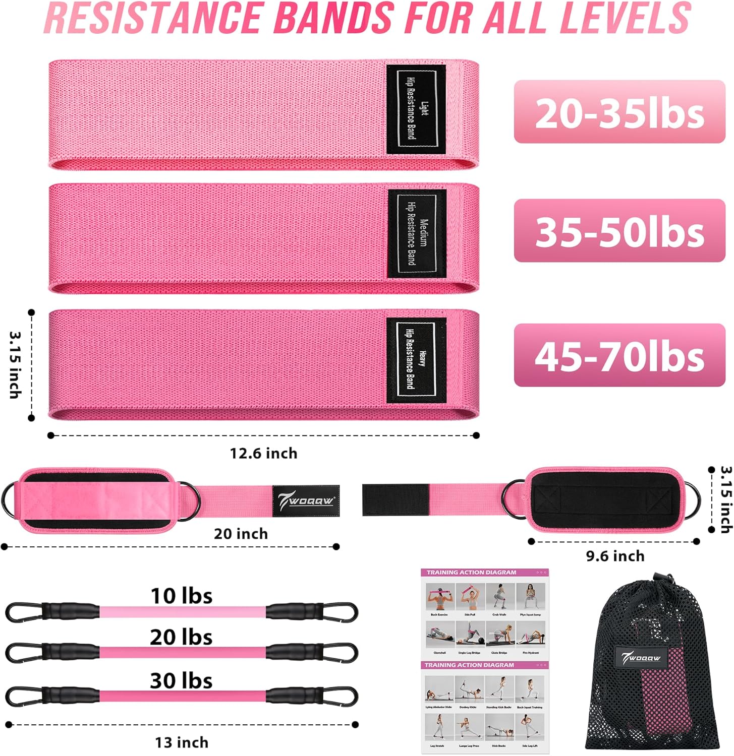 Glutes Workout Equipment Anytime, Anywhere: Our resistance bands set comes with a carry bag and detailed exercise guide, so you can train anywhere — at home, in the gym, office, or while traveling. Compact and lightweight, this fitness equipment offers full-body workouts on the go. Take it anywhere, stay consistent, and enjoy a stronger you — every day.
