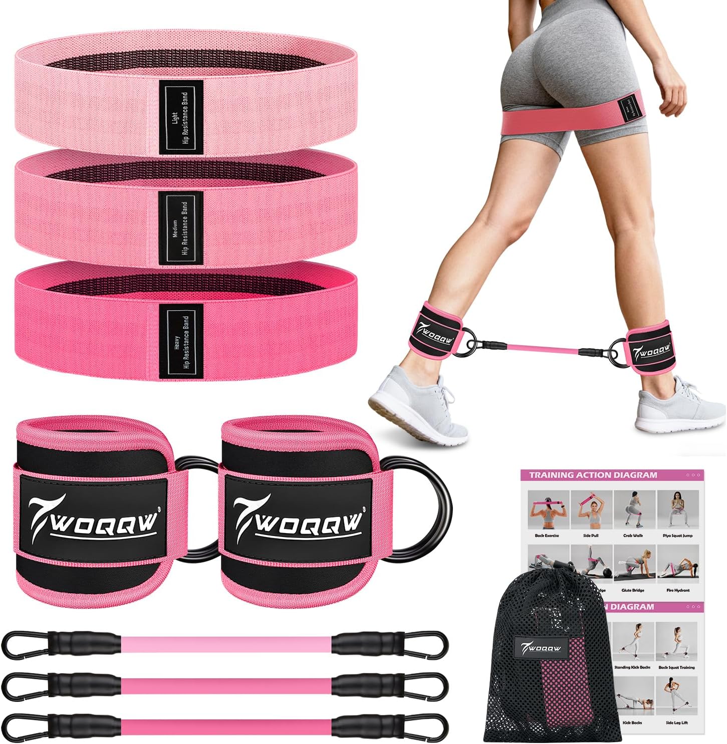 WOQQW Resistance Bands Set – Exercise Bands with Ankle Straps for Legs & Glute Workout, Fabric Booty Bands for Women Men, Home Gym Fitness Equipment for Hip, Pilates, Yoga, Physical Therapy, Stretch