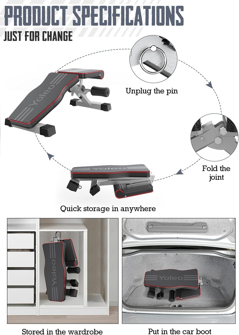 Yoleo Weight Bench, 660LBS Adjustable/Foldable Strength Training Bench, Utility Incline/Decline Workout Equipment, Gym Equipment for Full Body Workout with Fast Folding